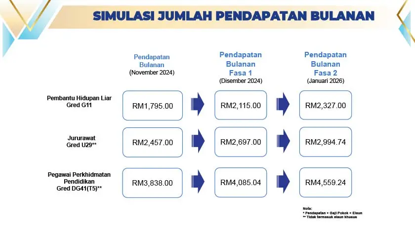 Pelarasan gaji Fasa 2 berkuat kuasa mulai 1 Januari 2026 dan dikira berdasarkan gaji akhir pada 31 Disember 2025.